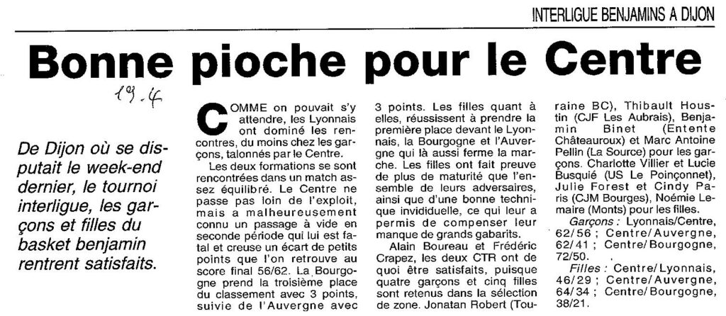 Saison 1999-2000 : Résultats du Tournoi Inter-ligue de Dijon