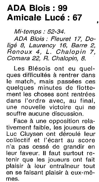 Saison 1999-2000 : En Championnat de Promotion d’Excellence Masculine, ADA Blois (R) bat Lucé