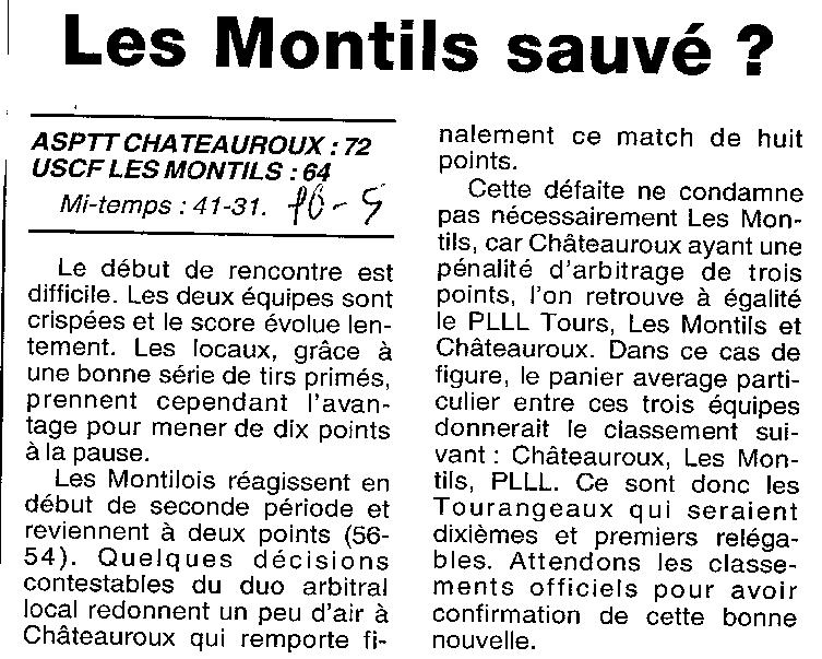 Saison 1999-2000 : En Championnat de Promotion d’Excellence Régionale Masculine, ASPTT Châteauroux bat Les Montils