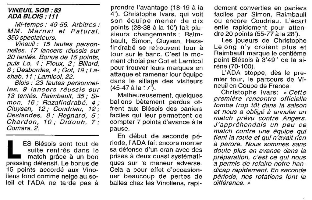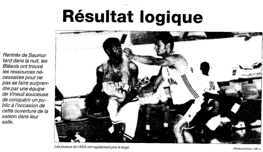 Saison 2000-2001 : Pour le 1er Tour de Coupe de France, l’ADA Blois s’impose à Vineuil