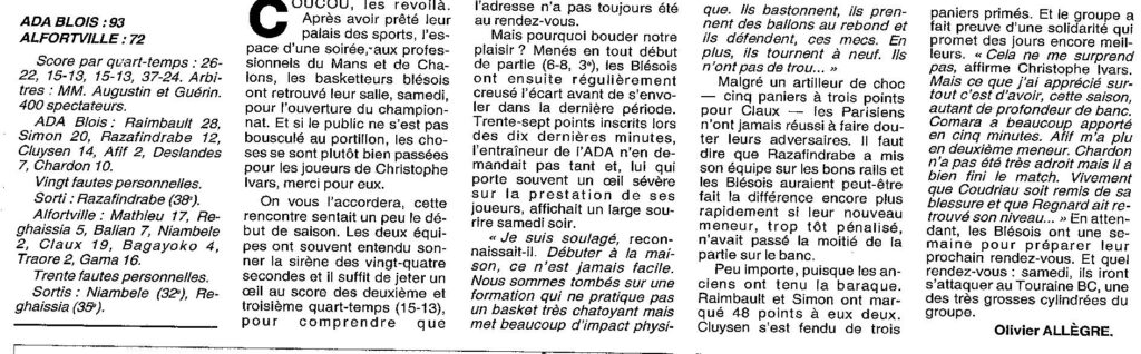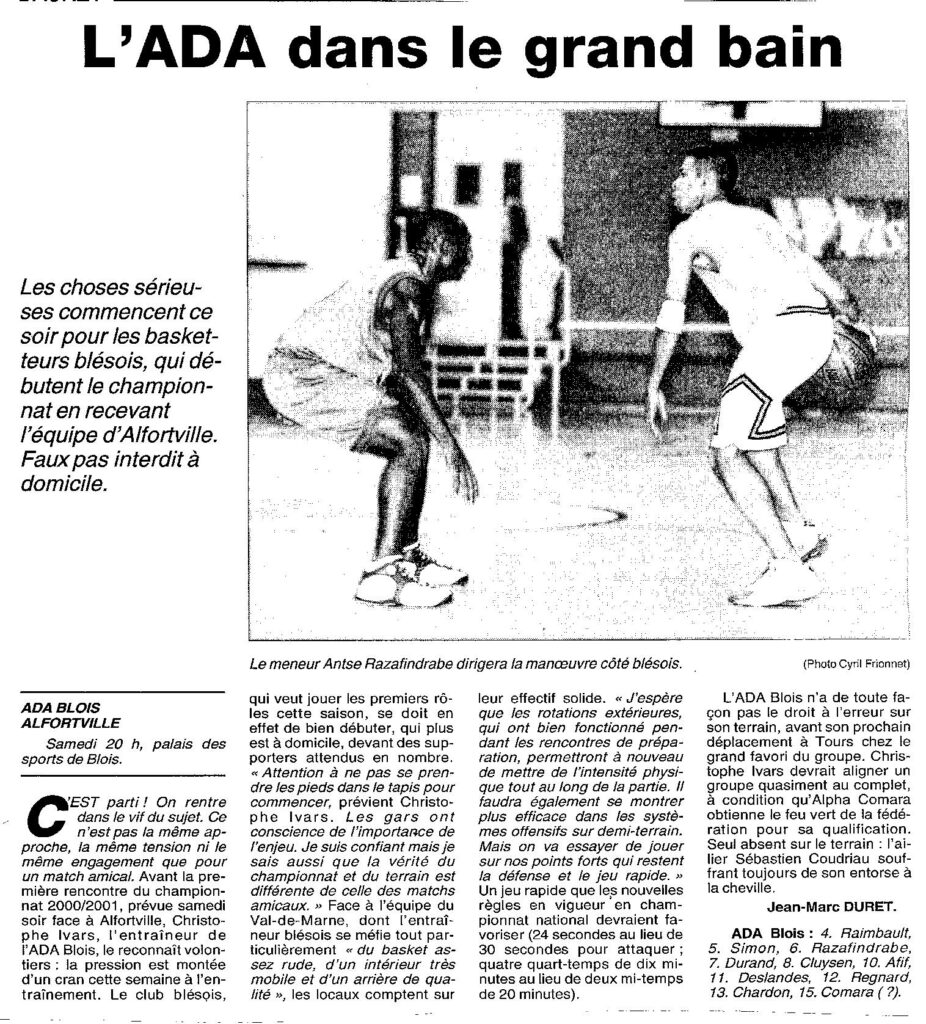 Saison 2000-2001 : En Championnat de Nationale Masculine 3, l’ADA Blois s’impose face à Alfortville