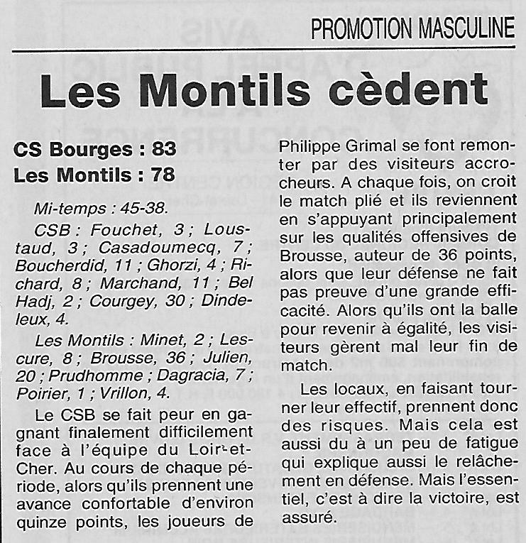 Saison 2000-2001 : En Championnat de Promotion d’Excellence Régionale Masculine B, lors de la Journée du 1er Octobre 2000, le CS Bourges bat Les Montils
