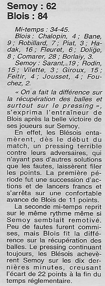 Saison 2000-2001 : En Championnat d’Excellence Régionale Masculine 2 A, lors de la Journée du 1er Octobre 2000, Blois bat Semoy