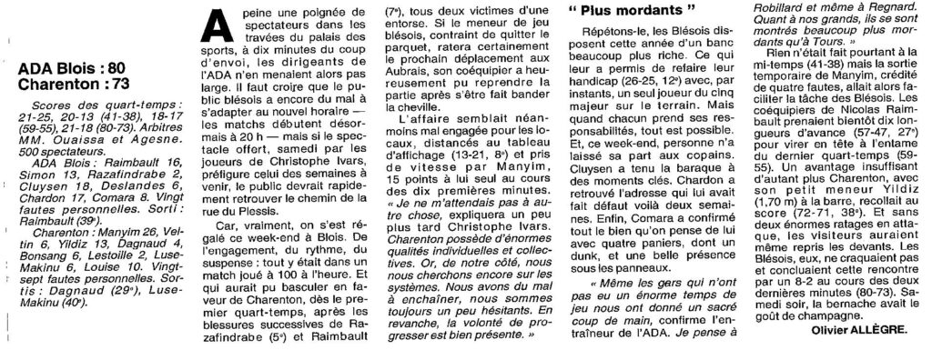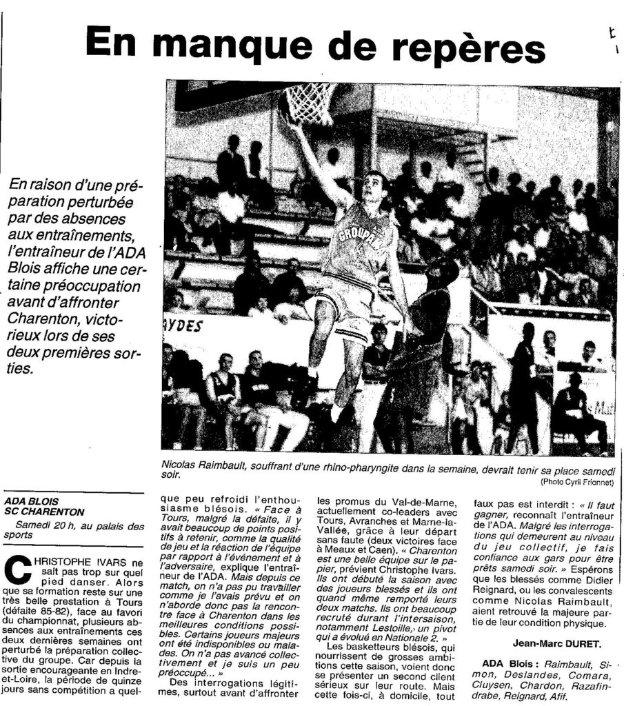 Saison 2000-2001 : En Championnat de Nationale Masculine 3, l’ADA Blois bat Charenton