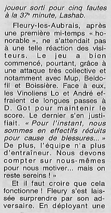 Saison 2000-2001 : En Championnat d’Excellence Régionale Masculine 2B, lors de la Journée du 15 Octobre 2000, Vineuil bat CJF Les Aubrais
