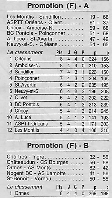 Saison 2000-2001 : Résultats et Classements après la Journée du 15 Octobre 2000 des Championnats Régionaux