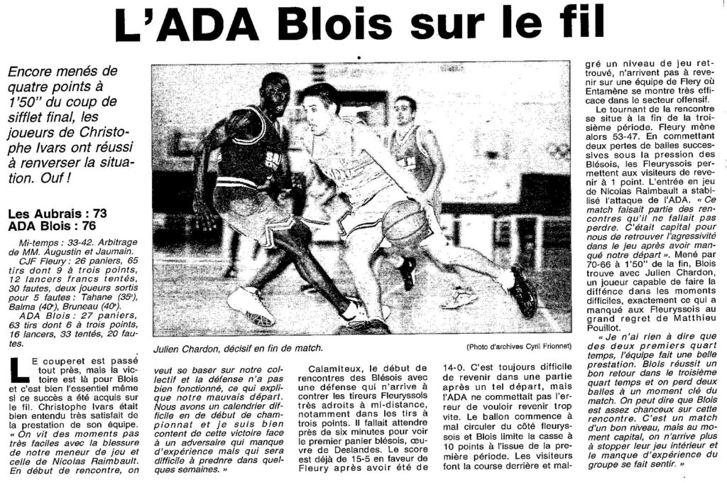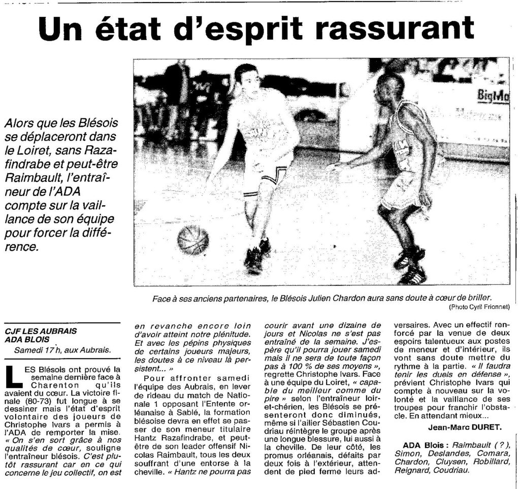 Saison 2000-2001 : En Championnat de Nationale Masculine 3, l’ADA Blois s’impose au CJF Les Aubrais