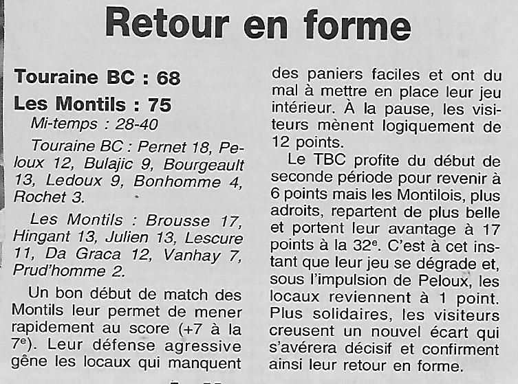 Saison 2000-2001 : En Championnat de Promotion d’Excellence Régionale Masculine B, lors de la Journée du 22 Octobre 2000, Les Montils bat Touraine BC