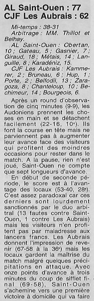 Saison 2000-2001 : En Championnat d’Excellence Régionale Masculine 2B, lors de la Journée du 22 Octobre 2000, AL St Ouen bat CJF Les Aubrais