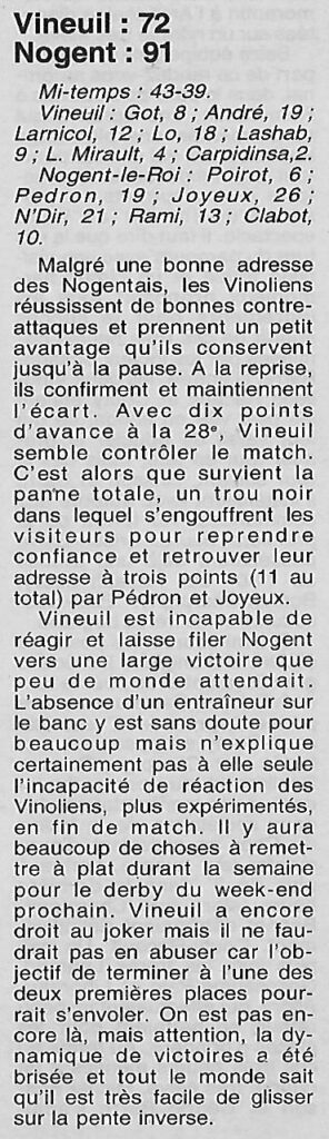 Saison 2000-2001 : En Championnat d’Excellence Régionale Masculine 2B, lors de la Journée du 22 Octobre 2000, Nogent bat Vineuil