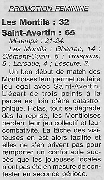 saison 2000-2001 : En Championnat de Promotion d’Excellence Féminine A, lors de la Journée du 29 Octobre 2000, Saint-Avertin bat Les Montils