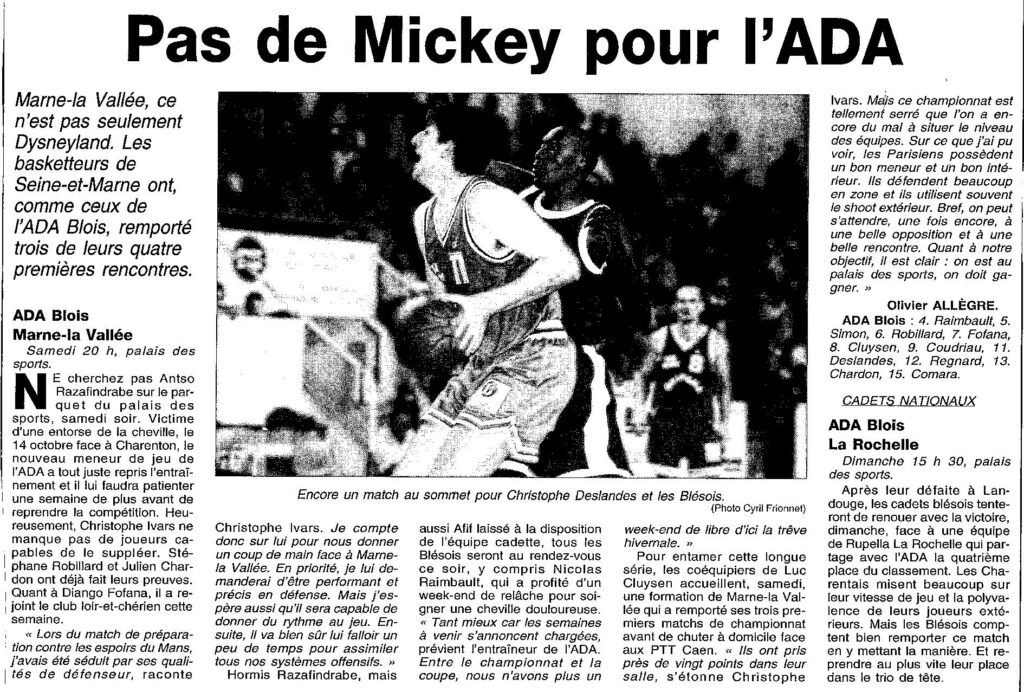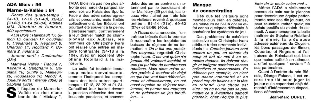 Saison 2000-2001 : En Championnat de Nationale Masculine 3, l’ADA Blois bat Marne-la-Vallée