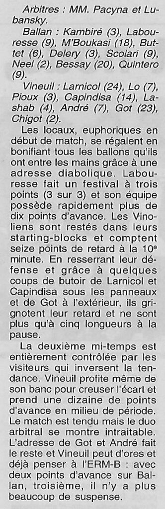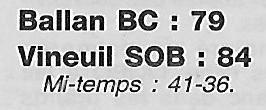 Saison 2000-2001 : En Championnat d’Excellence Régionale 2B, lors de la Journée du 19 Novembre 2000, Vineuil SOB bat Ballan BC