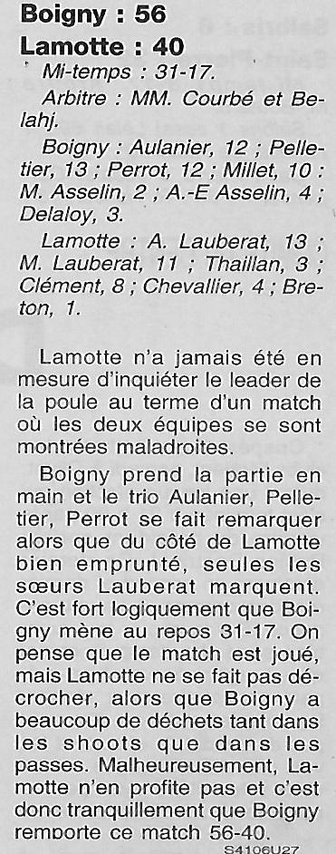 Saison 2000-2001 : En Championnat de Promotion d’Excellence Féminine B, lors de la Journée du 26 Novembre 2000, Boigny bat Lamotte