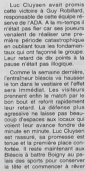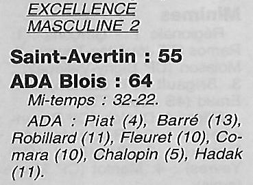 Saison 2000-2001 : En Championnat d’Excellence Régionale Masculine 2A, lors de la Journée du 3 Décembre 2000, l’ADA Blois bat St Avertin