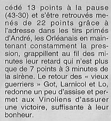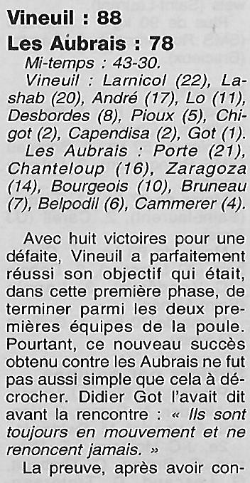 Saison 2000-2001 : En Championnat d’Excellence Régionale Masculine 2B, lors de la Journée du 3 Décembre 2000, Vineuil bat Les Aubrais
