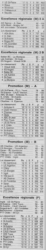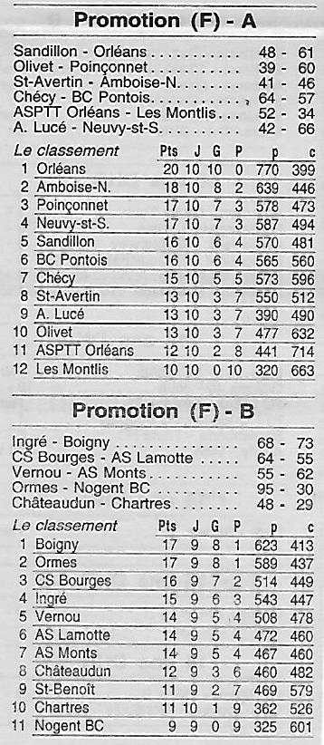 Saison 2000-2001 : Résultats et Classements après la Journée du 10 Décembre 2000 des Championnats Régionaux