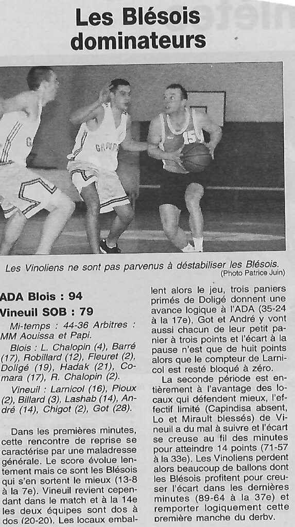 Saison 2000-2001 : En Championnat d’Excellence Régionale Masculine B, lors de la Journée du 7 Janvier 2001, l’ADA Blois bat Vineuil