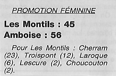 Saison 2000-2001 : En Championnat de Promotion d’Excellence Féminine A, lors de la Journée du 14 Janvier 2001, Amboise bat Les Montils