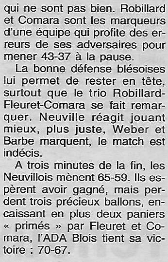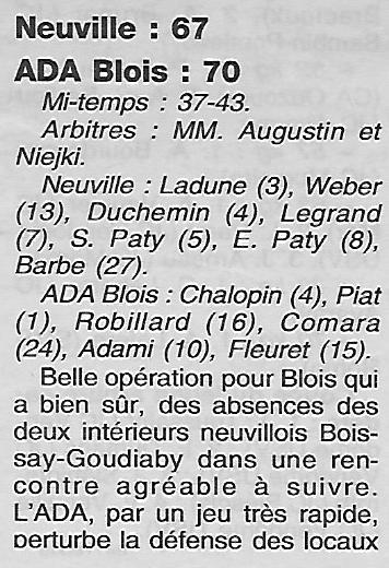 Saison 2000-2001 : En Championnat d’Excellence Régionale Masculine B, lors de la Journée du 14 Janvier 2001, l’ADA Blois bat Neuville