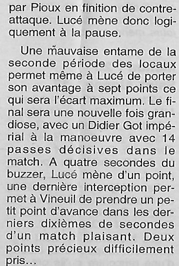 Saison 2000-2001 : En Championnat d’Excellence Régionale Masculine B, lors de la Journée du 21 Janvier 2001, Vineuil bat Lucé