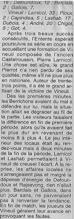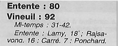 Saison 2000-2001 : En Championnat d’Excellence Régionale Masculine B, lors de la journée du 28 Janvier 2001, Vineuil bat l’Entente de Châteauroux