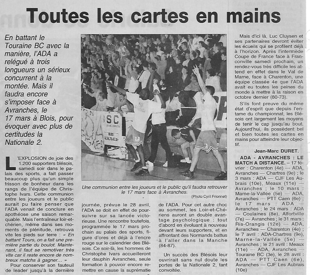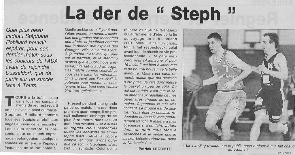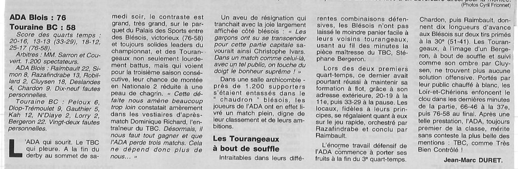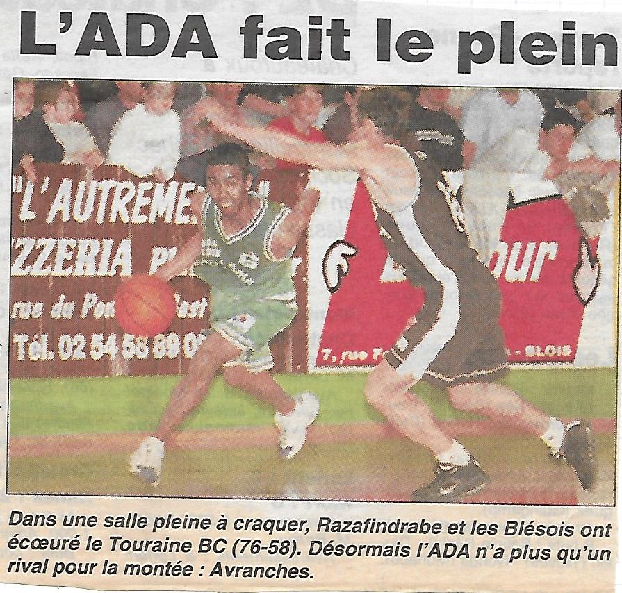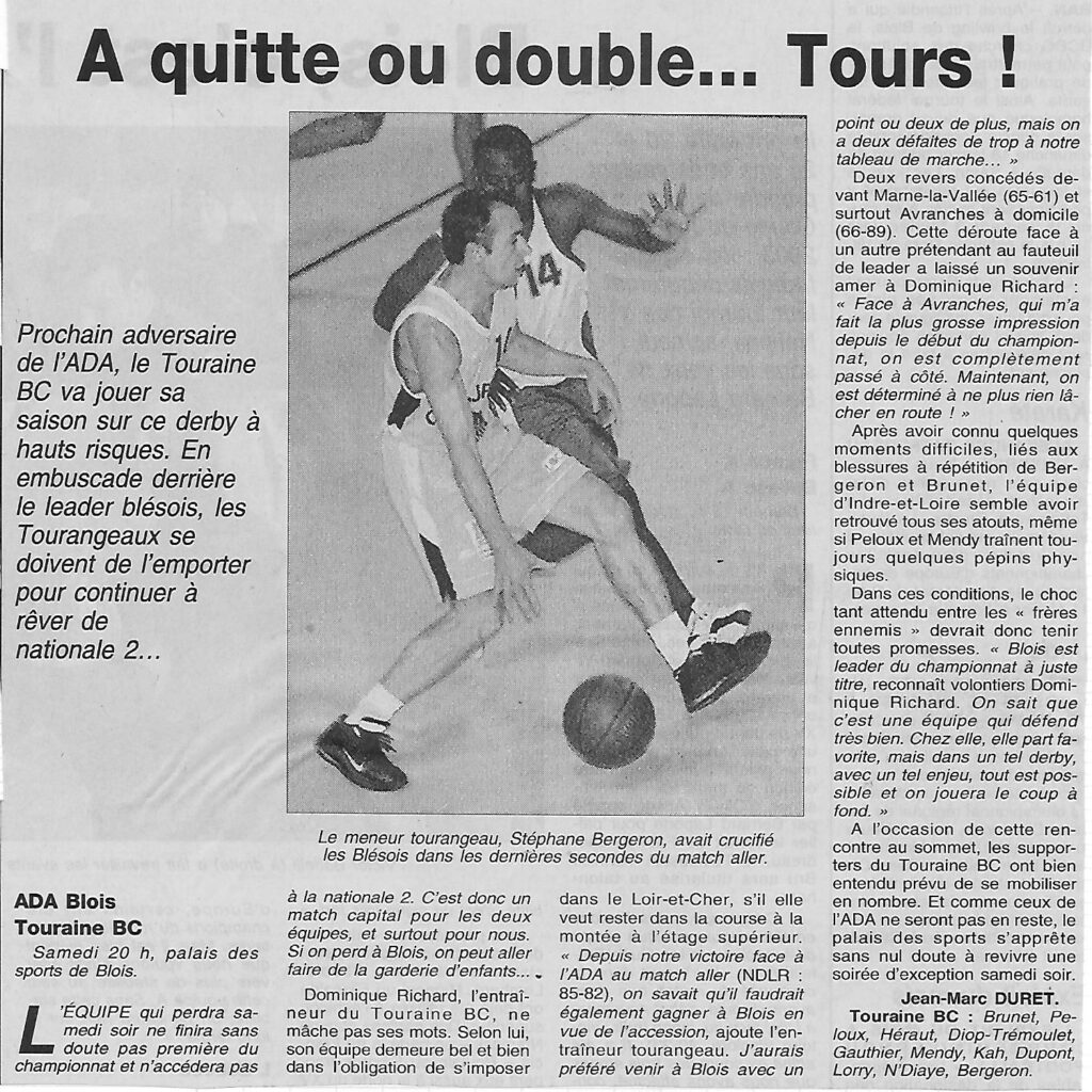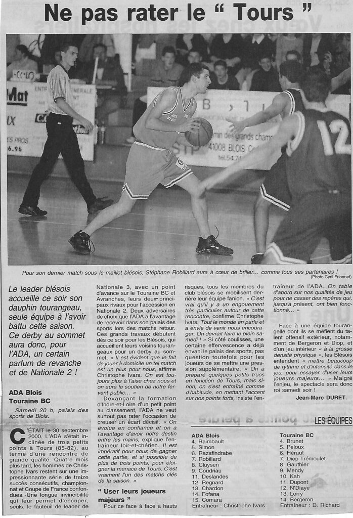 Saison 2000-2001 : En Championnat de Nationale Masculine 3, l’ADA Blois l’emporte face au Touraine BC
