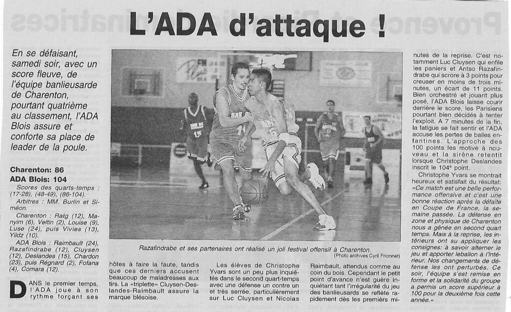 Saison 2000-2001 : En Championnat de Nationale Masculine 3, l’ADA Blois prend le Meilleur sur Charenton