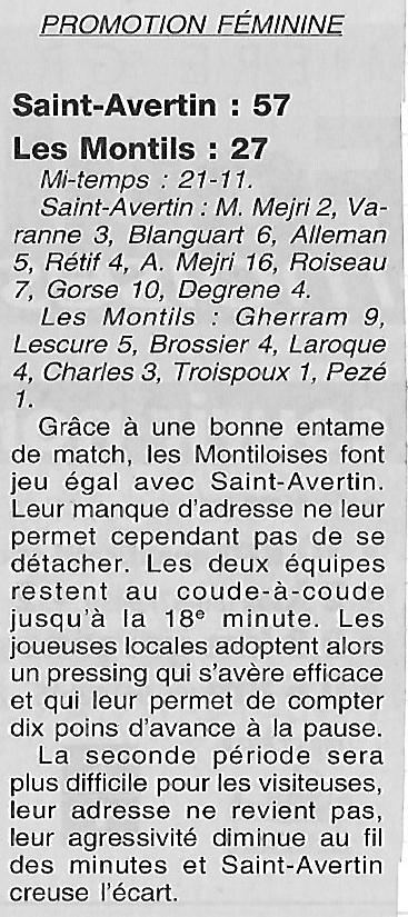 Saison 2000-2001 : En Championnat de Promotion d’Excellence Régionale Féminine A, lors de la Journée du Mars 2001, St Avertin bat Les Montils