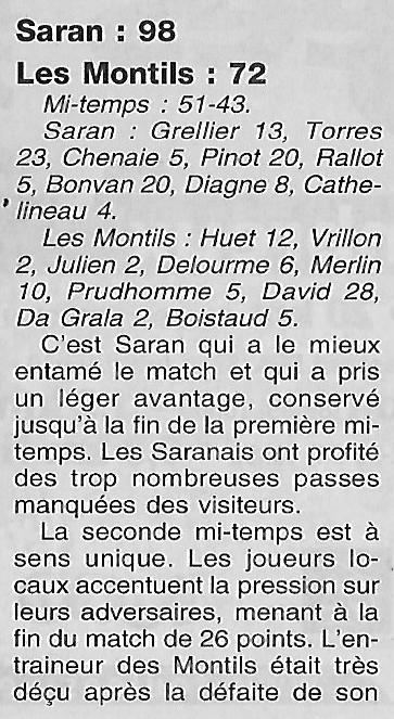 Saison 2000-2001 : En Championnat de Promotion d’Excellence Régionale Masculine B, lors de la Journée du 4 Mars 2001, l’USM Saran bat Les Montils