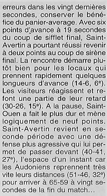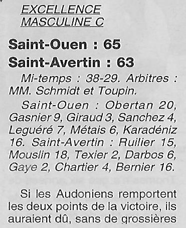 Saison 2000-2001 : En Championnat d’Excellence Régionale Masculine C, lors de la Journée du 11 mars 2001, St Ouen bat St Avertin