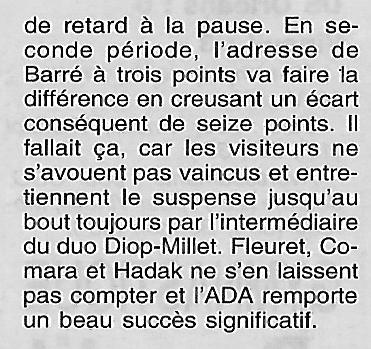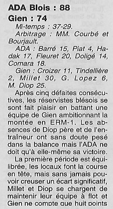 Saison 2000-2001 : En Championnat d’Excellence Régionale Masculine B, lors de la Journée du 18 mars 2001, l’ADA Blois bat Gien