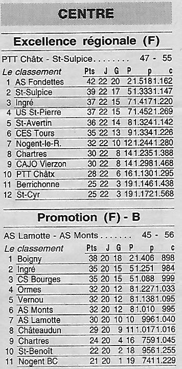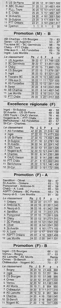 Saison 2000-2001 : Résultats et Classements des Championnats Régionaux après la Journée du 25 mars 2001