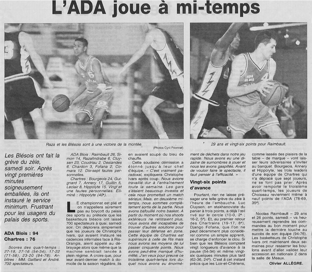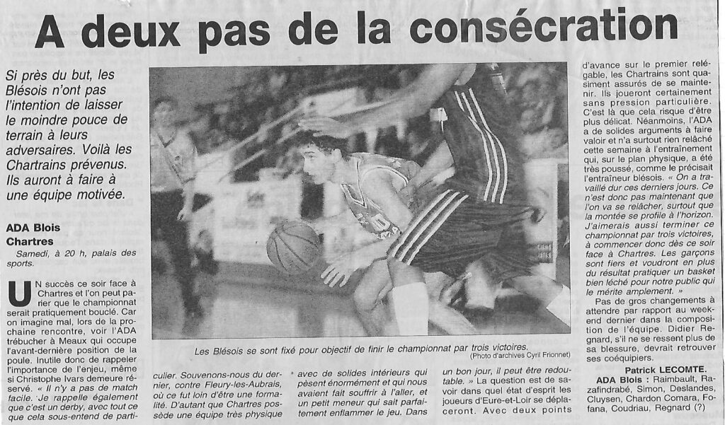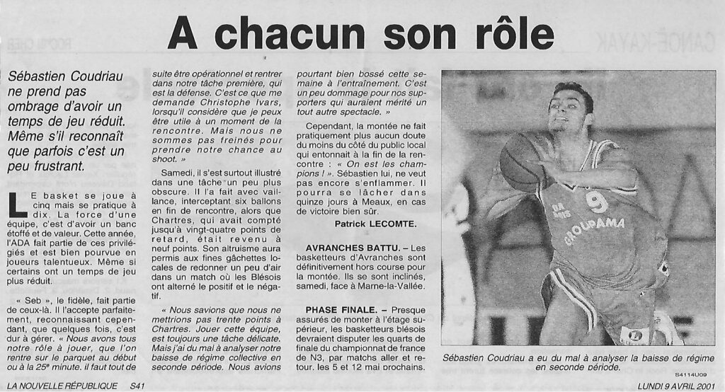 saison 2000-2001 : En Championnat de Nationale Masculine 3, l’ADA Blois s’impose face à l’UB Grand Chartres
