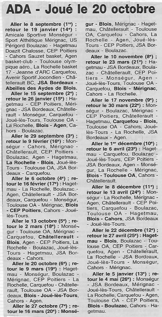Saison 2001-2002 : Calendrier de l’ADA Blois en Nationale Masculine 2