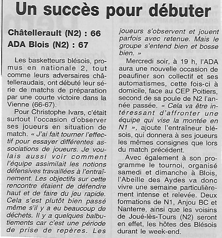 Saison 2001-2002 : Victoire de l’ADA Blois face à Châtellerault