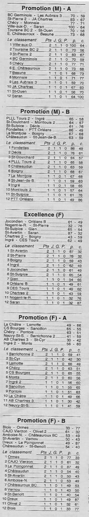 Saison 2001-2002 : Résultats et Classements après la 1ère Journée des Championnats Régionaux