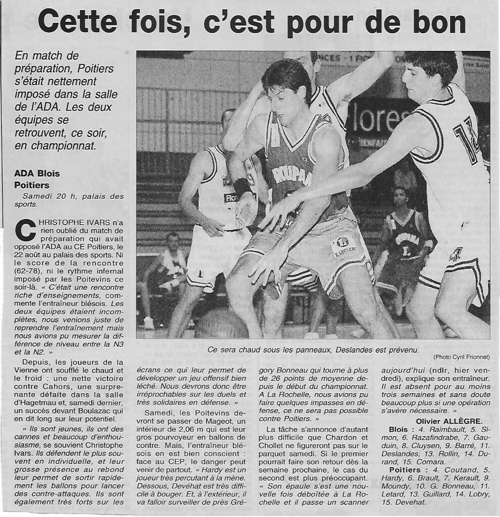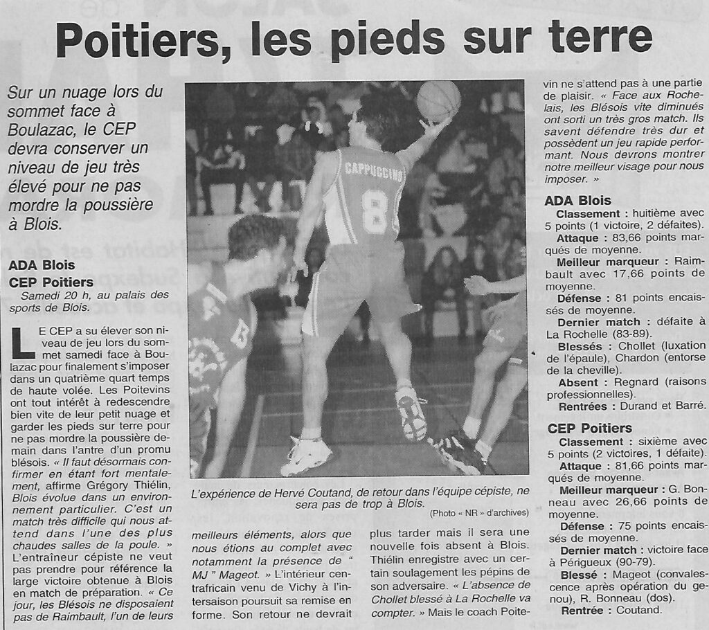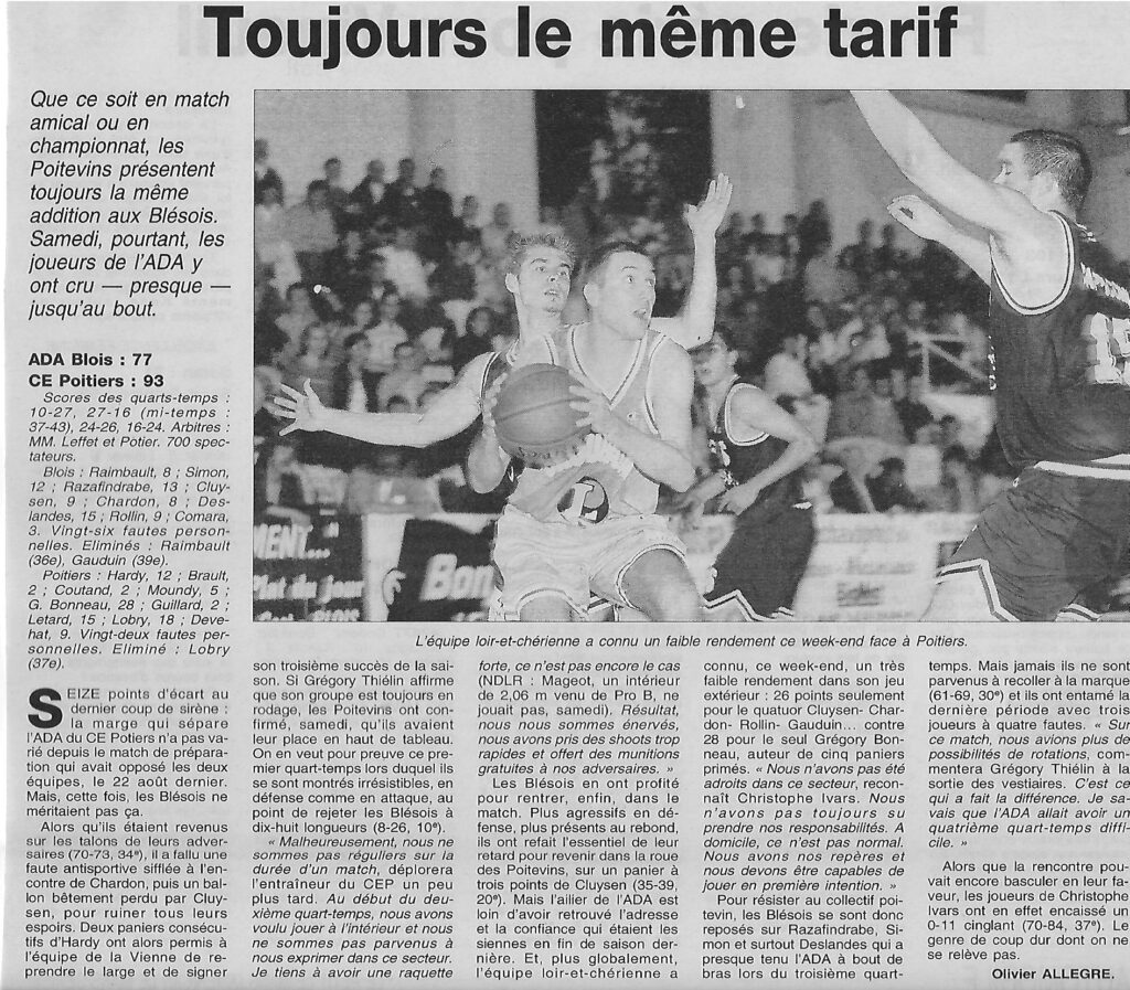 Saison 2001-2002 : En Championnat de Nationale Masculine 2, l’ADA Blois s’incline à domicile devant le CEP Poitiers