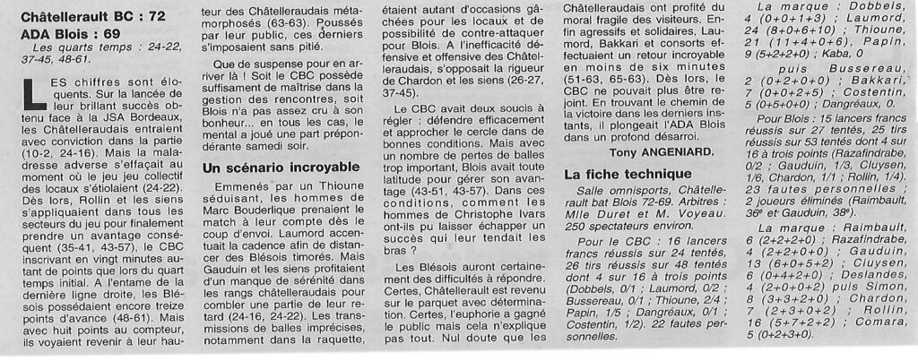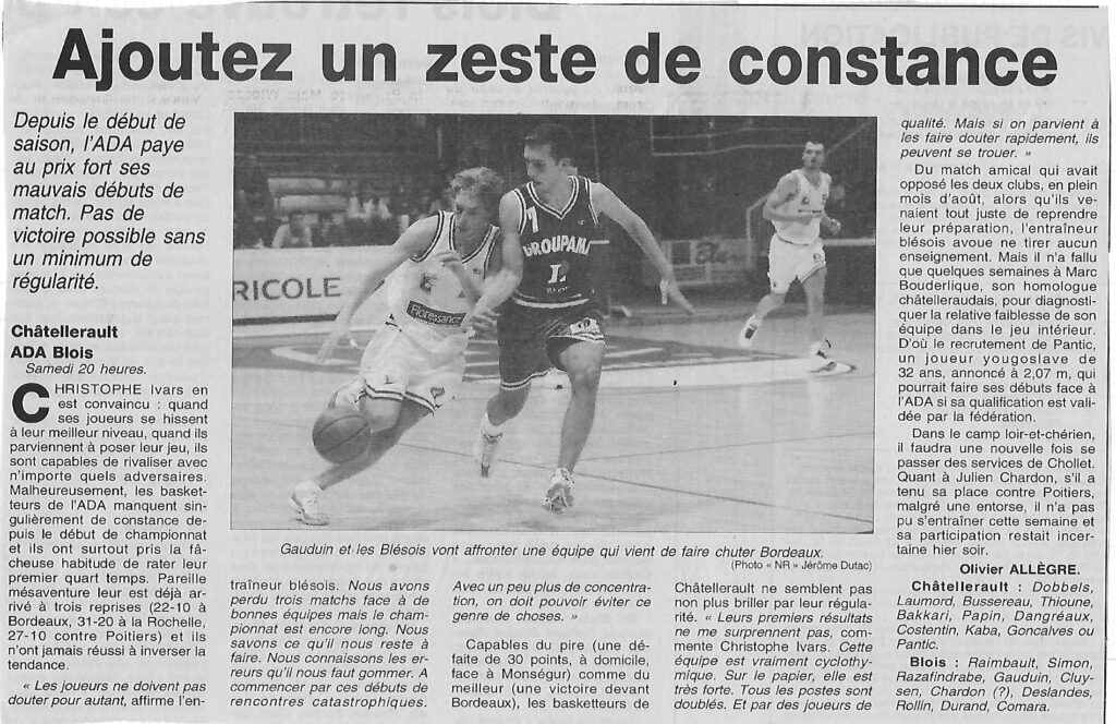 Saison 2001-2002 : En Championnat de Nationale Masculine 2, Châtellerault s’impose face à l’ADA Blois