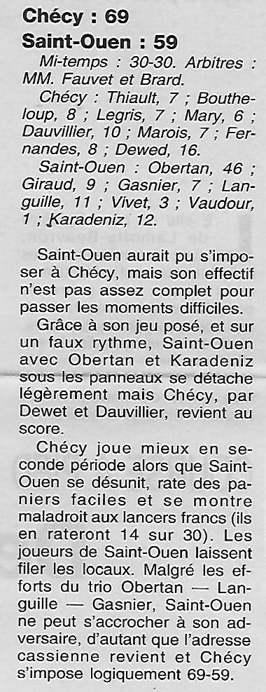 Saison 2001-2002 : En Championnat de Promotion d’Excellence Régionale Masculine A, lors de la 3ème Journée, Chécy bat Saint-Ouen