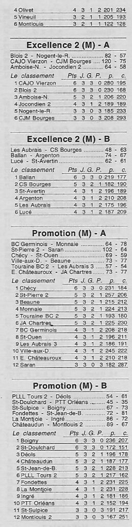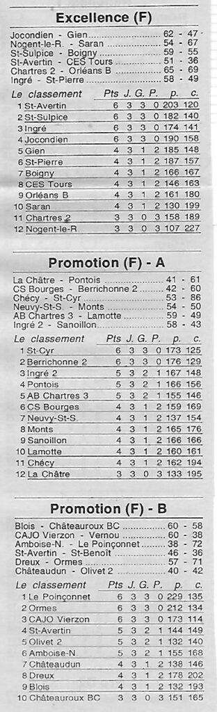 Saison 2001-2002 : Résultats et Classements après la 3ème Journée des Championnats Régionaux