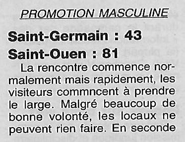 Saison 2001-2002 : En Championnat de Promotion d’Excellence Régionale Masculine 2 A, lors de la 5ème Journée, Saint Ouen bat St Germain