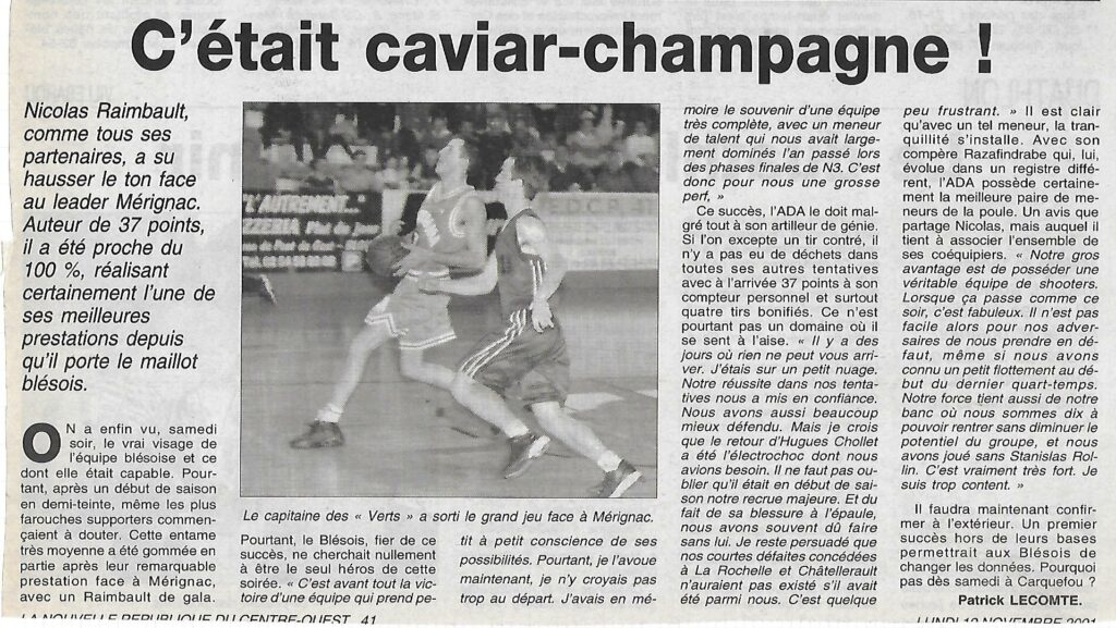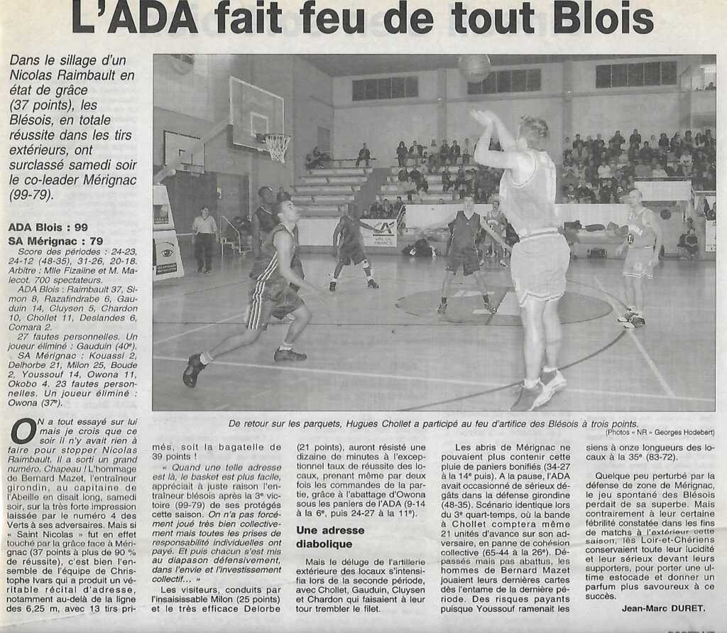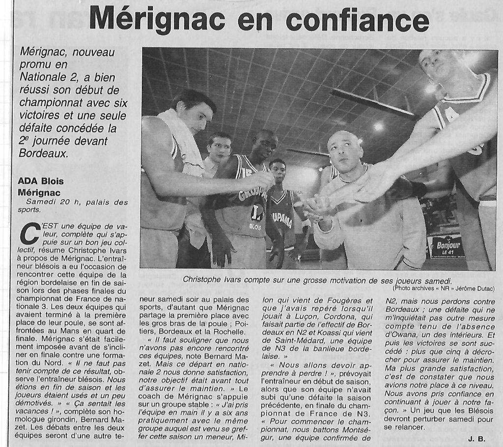 Saison 2001-2002 : En Championnat de Nationale Masculine 2, l’ADA Blois bat Mérignac