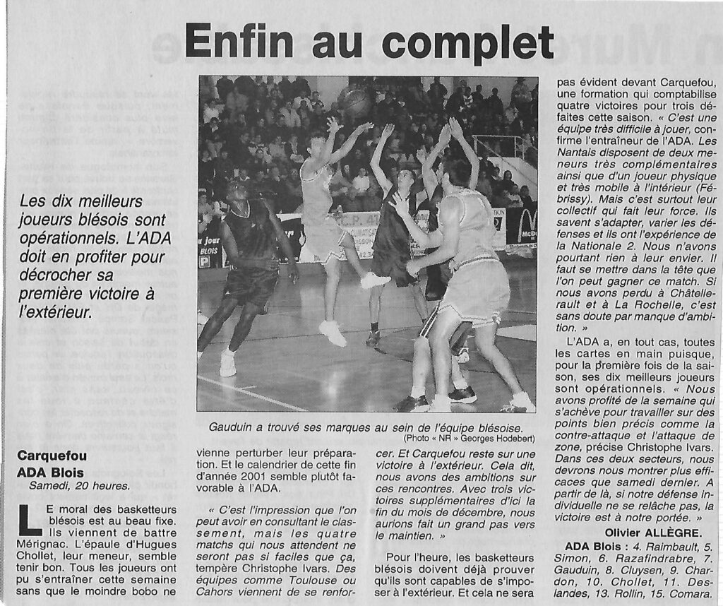 Saison 2001-2002 : En Championnat de Nationale Masculine 2, l’ADA Blois s’incline à Carquefou