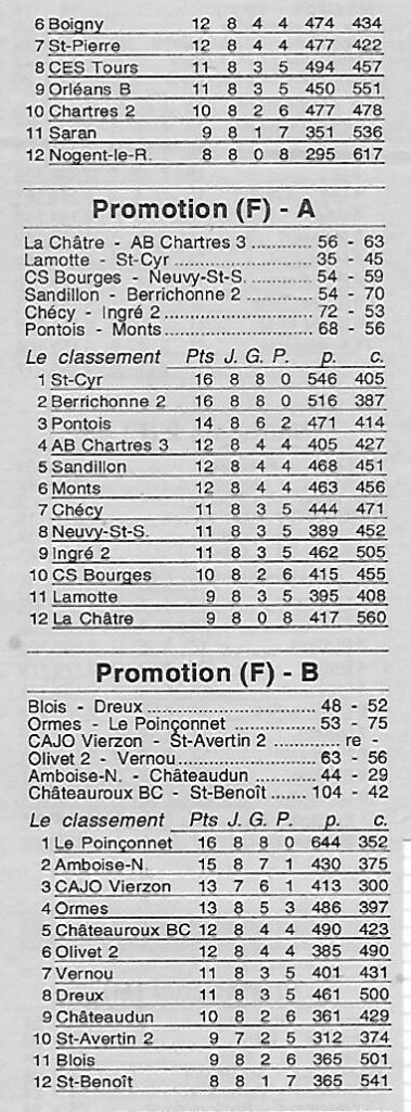 Saison 2001-2002 : Résultats et Classements après la 8ème Journée des Championnats Régionaux