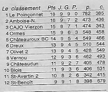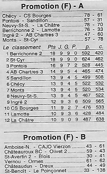 Saison 2001-2002 : Résultats et Classements après la 9ème Journée des Championnats Régionaux