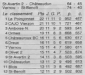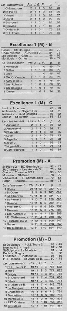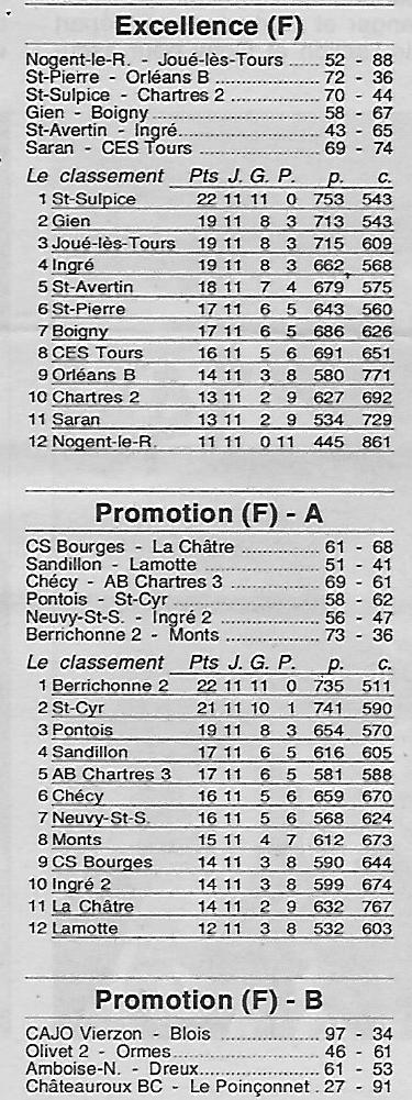Saison 2001-2002 : Résultats et Classements après la 11ème Journée des Championnats Régionaux