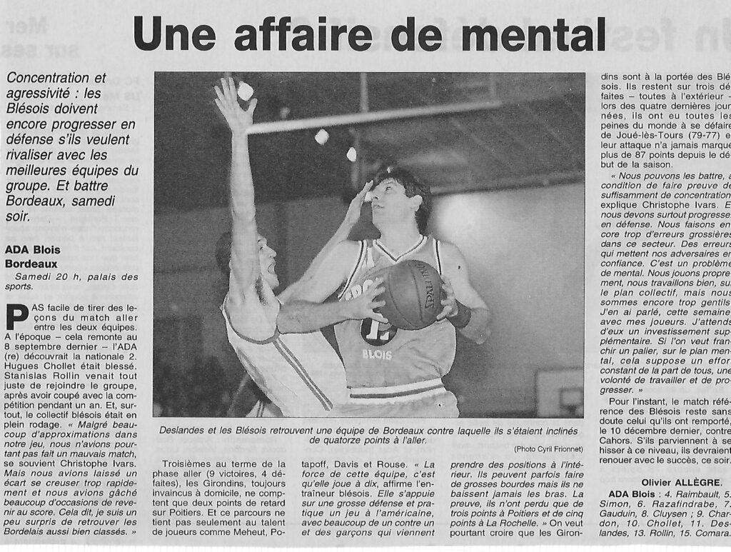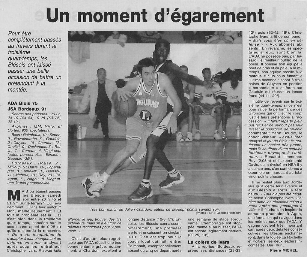 Saison 2001-2002 : En Championnat de Nationale Masculine 2, l’ADA Blois s’incline face aux JSA Bordeaux