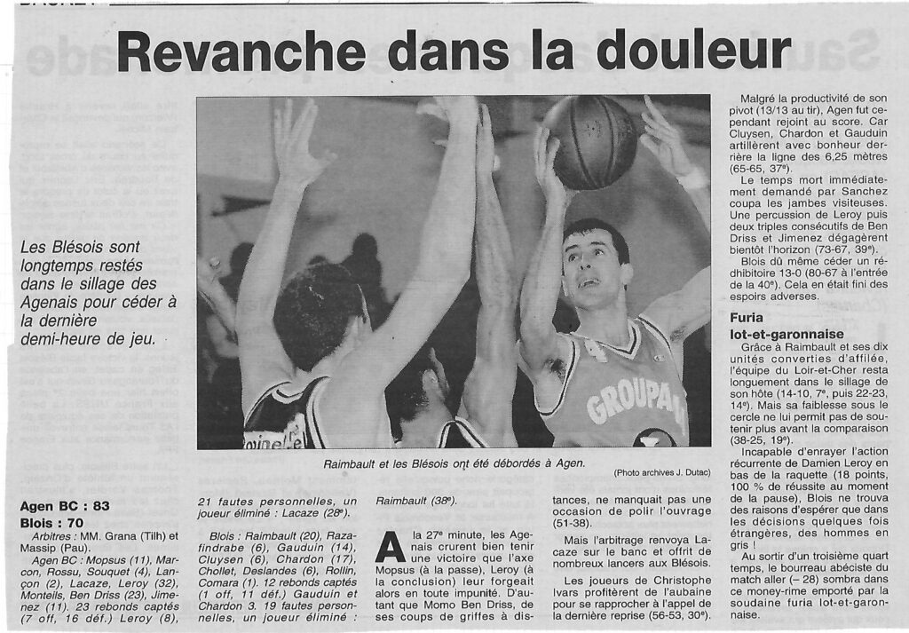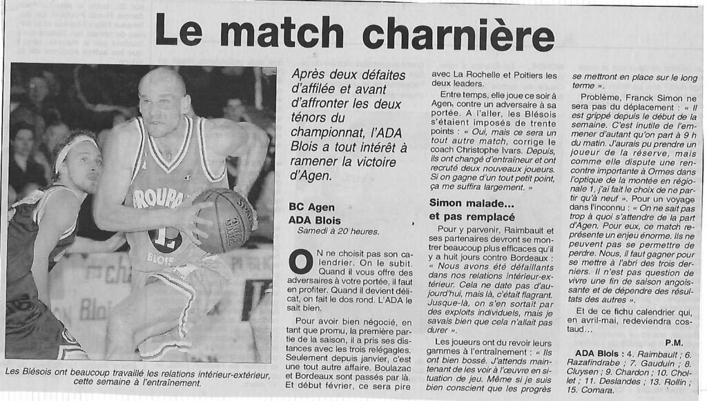 Saison 2001-2002 : En Championnat de Nationale Masculine 2, l’ADA Blois s’incline à Agen