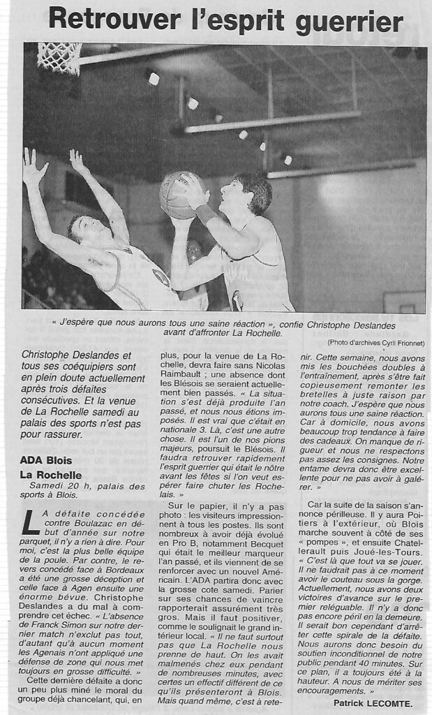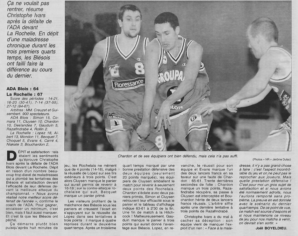 Saison 2001-2002 : En Championnat de Nationale Masculine 2, l’ADA Blois s’incline face à La Rochelle